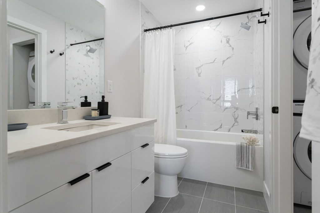 Blending timeless simplicity with clean and modern elements, Icons’ interiors are a work of art. The captivating kitchens, breathtaking bathrooms and luxurious living spaces are equipped with ultra quiet appliances, quartz stone countertops, custom closets, 9 foot ceilings and a mix of chrome and black fixtures throughout. The flooring shifts to suit each space starting with clean and textured laminate in the kitchen, dining and living areas, plush carpet in the bedrooms and contemporary tiles in the bathroom to match its spa-like feel.